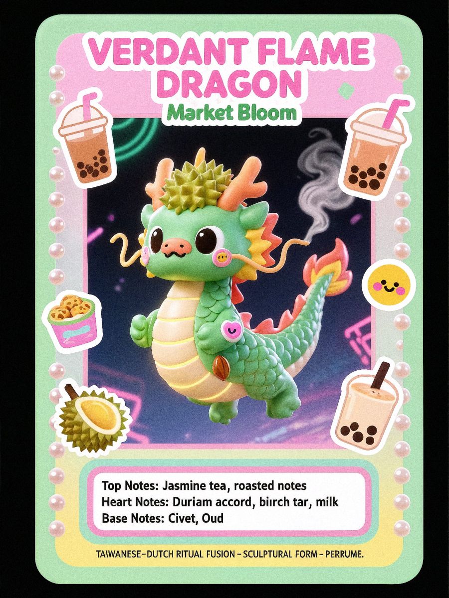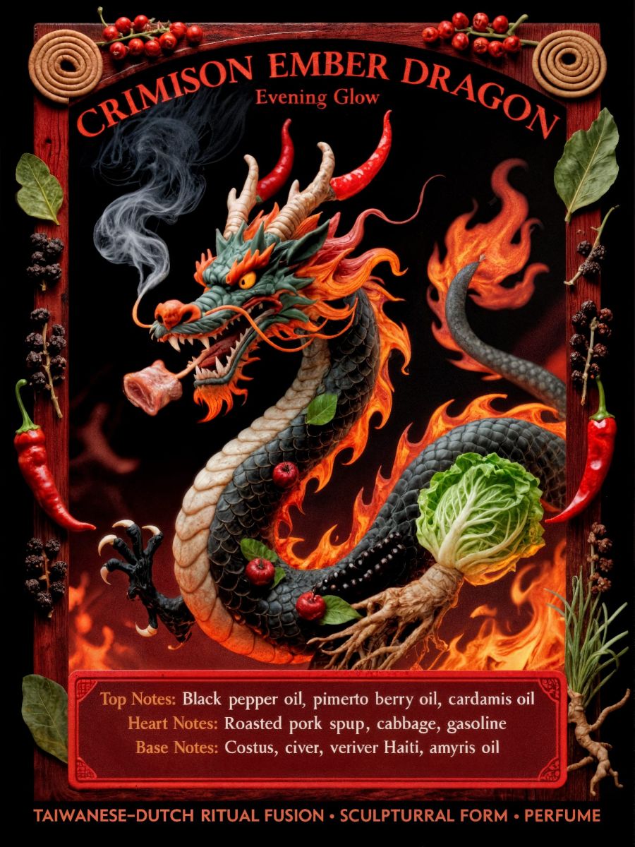 The Dragon Scent Codex is een parfumbox van Arno Coenen met vijf artistieke geuren (5 × 5 ml). De collectie bestaat uit vijf afzonderlijke parfumwerken die samen één narratief vormen: een dag in Taipei, vertaald naar geur.