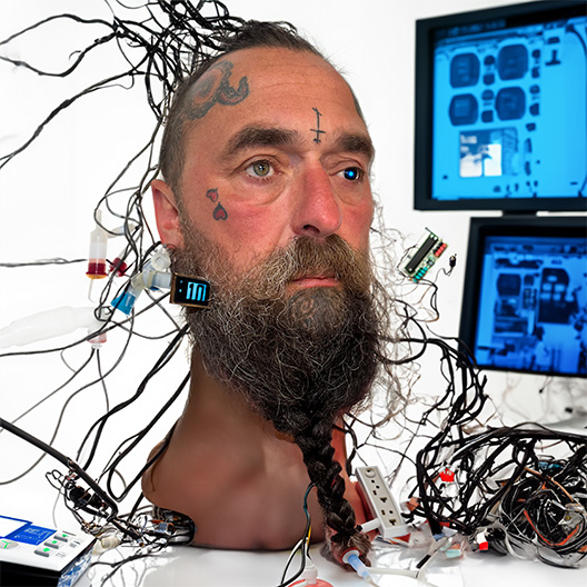 Arno Coenen graduated from Academie Minerva in Groningen in 1997 and obtained an MFA in computer graphics at Media-GN, Groningen, a year later. Coenen employs a diverse range of media, including video, 3D animation, laser cutting technology, and more traditional crafts such as